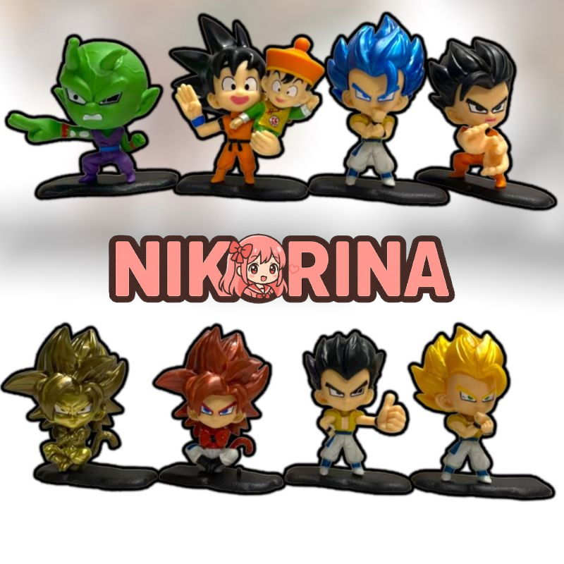 Set de figuras Dragon BallIncluye:-Picollo-Gokú con Gohan-Vegito Ssj Blue-Gohan Adulto-Gotenks-Gotenks Ssj-Gogeta Ssj 4-Gogeta Dorado